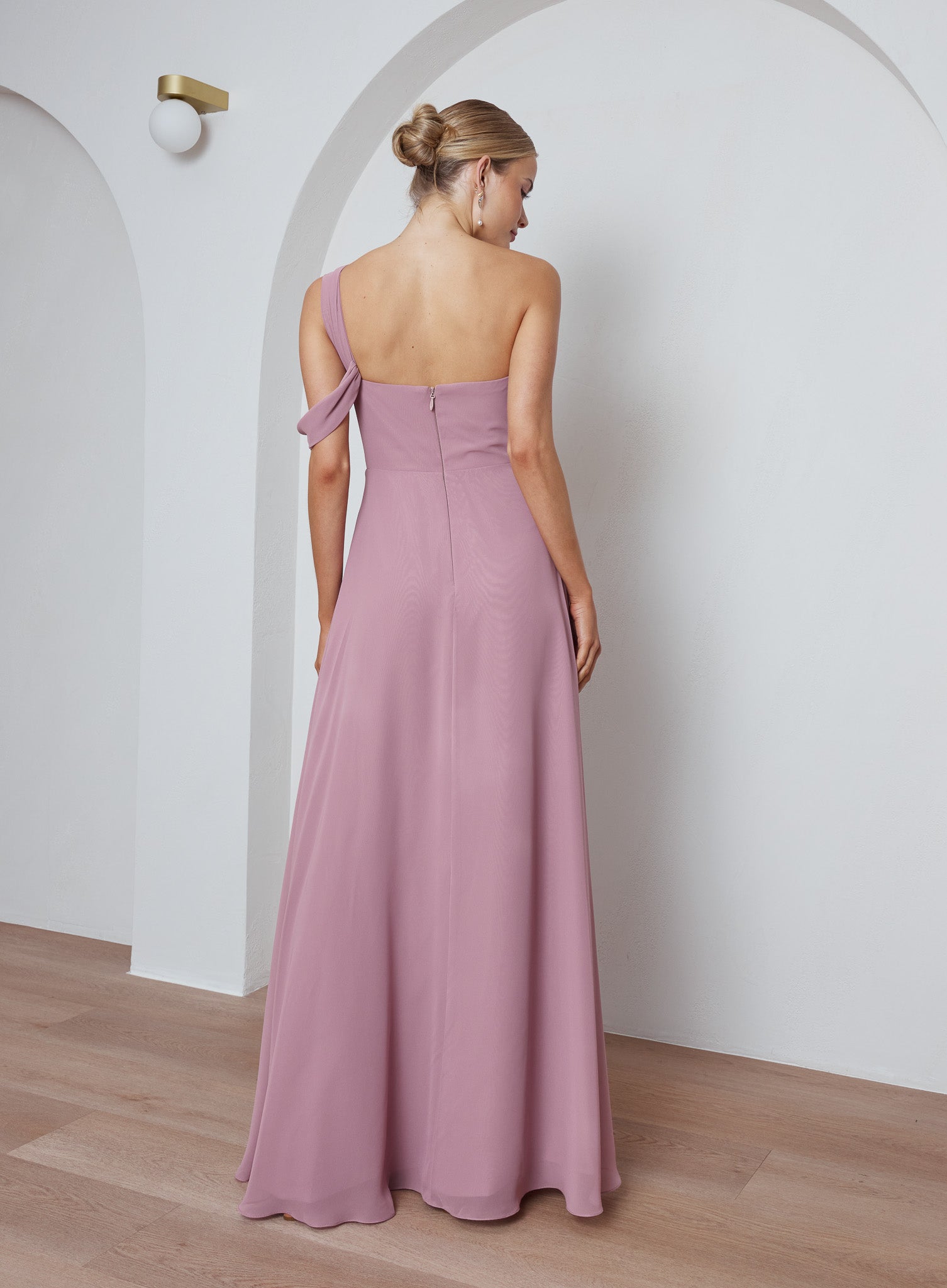 Crafted from georgette, the fabric drapes beautifully and feels lightweight and refined. The Emeraude Bridesmaid Dress is the perfect choice for bridal parties seeking a blend of sophistication and modern style.
