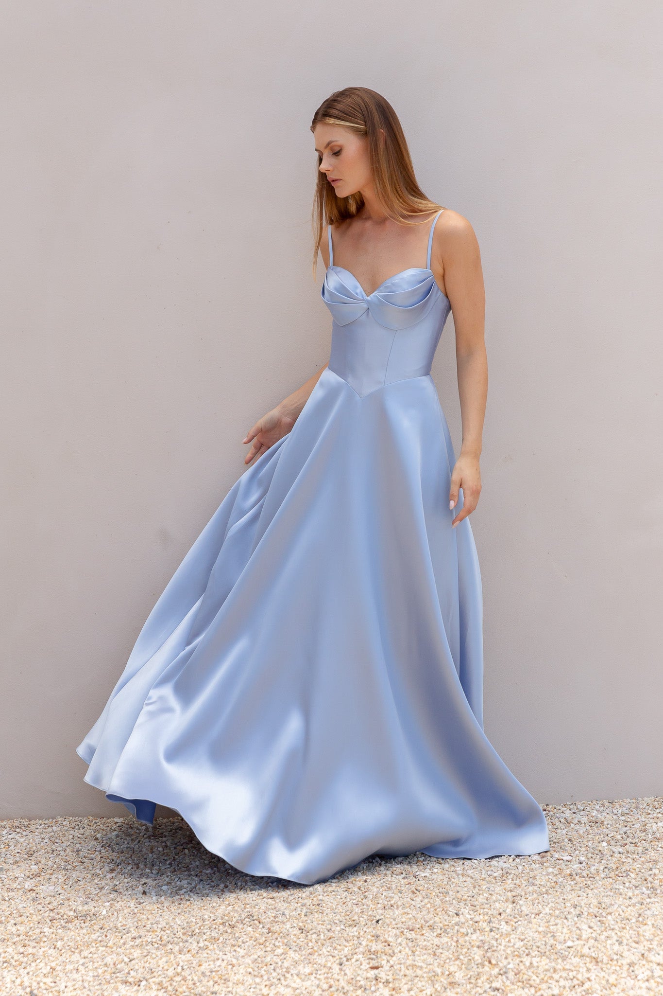 Elegance meets timeless design in our Luna Formal Dress, featuring a romantic sweetheart neckline with delicate draping across the bust. The corset bodice with structured boning provides a flattering, supportive fit, complete with detachable spaghetti straps for versatile styling. Flowing into a voluminous, floor-length A-line skirt, this gown creates a striking silhouette ideal for formal occasions. Finished with an invisible back zip for a seamless look.
